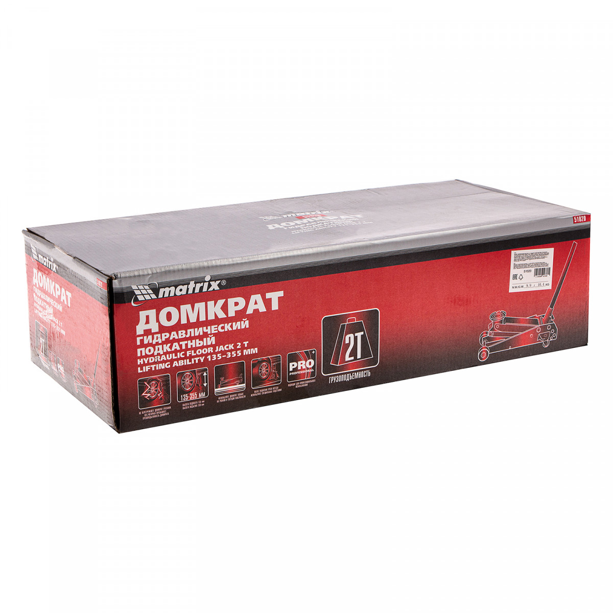 Подкатной гидравлический домкрат Matrix 51020 с высотой подхвата 135 мм, — полупрофессиональное гаражное оборудование, способное поднимать груз массой до 2 т на высоту до 355 мм. Высота подхвата 135 мм позволяет использовать домкрат для автомашин со стандартным клиренсом. Домкрат будет полезен как в автомастерской, так и в частном гараже.