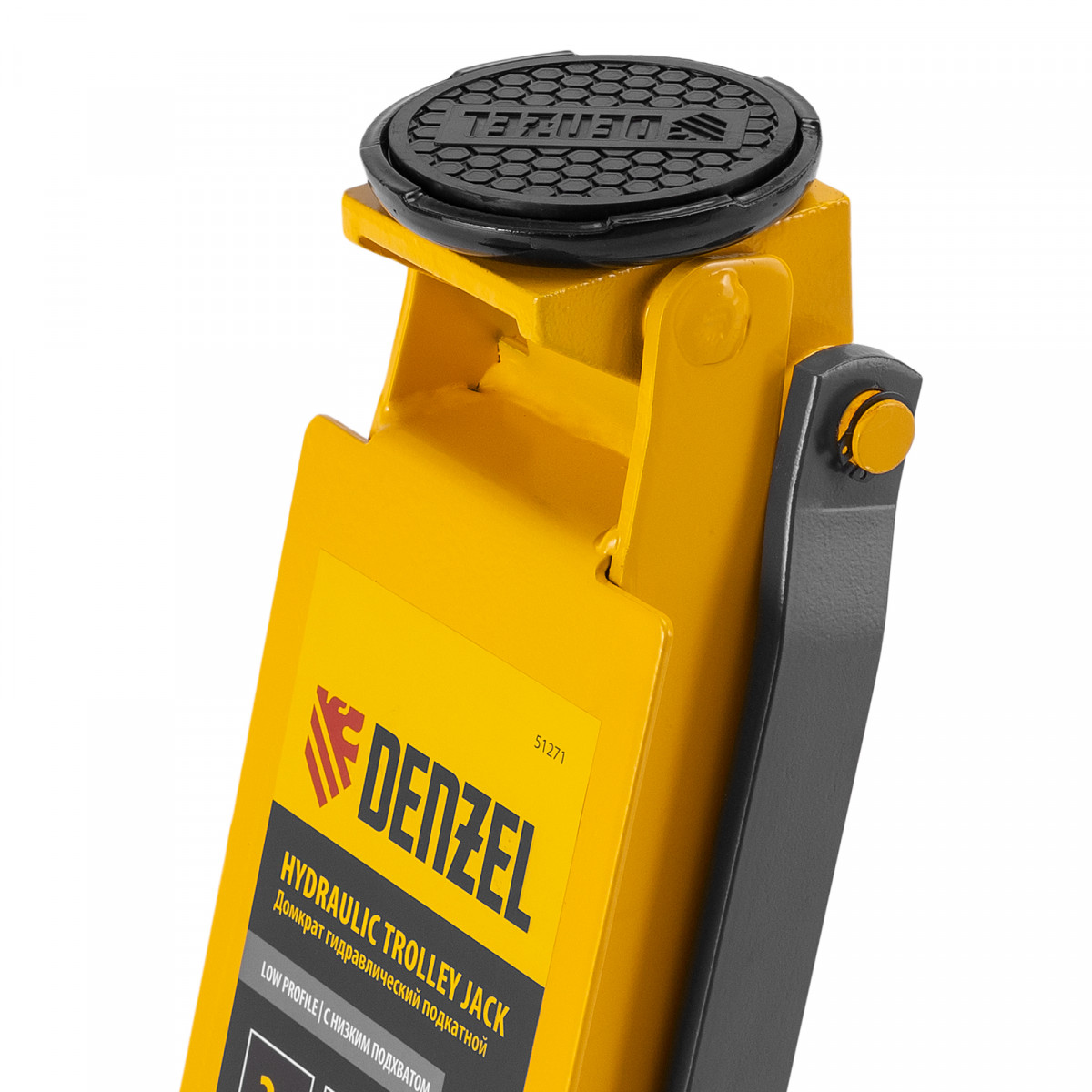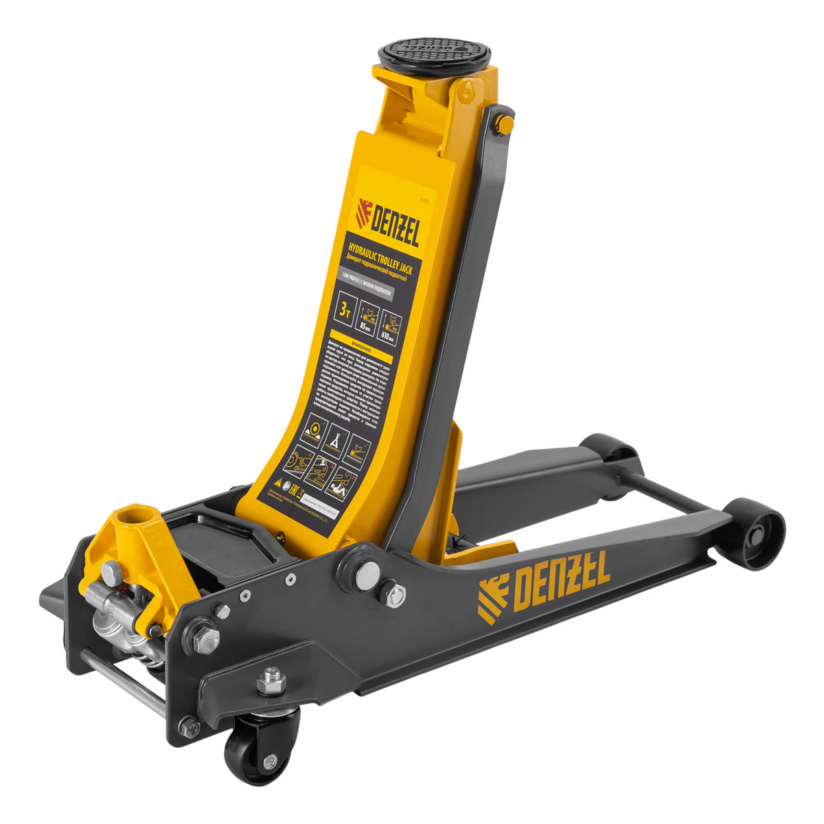 Домкрат гидравлический подкатной, 3 т, 85-610 мм, быстрый подъем, низ. подхват, проф, SUV Denzel