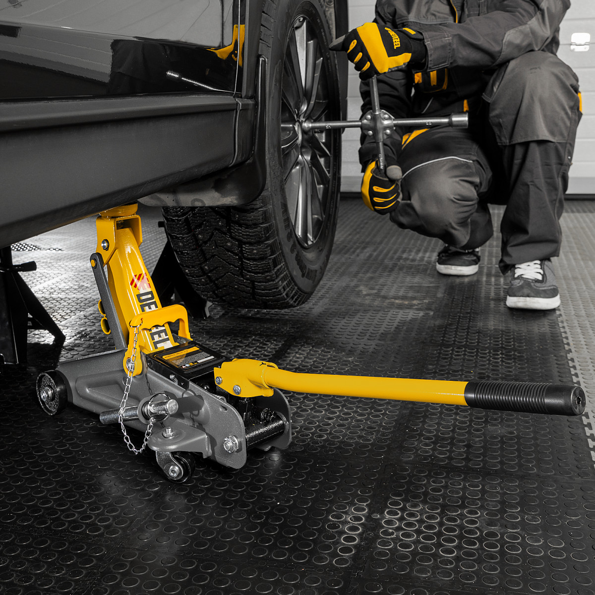 Домкрат гидравлический подкатной с фиксатором, 2 т, 130-330 мм Denzel