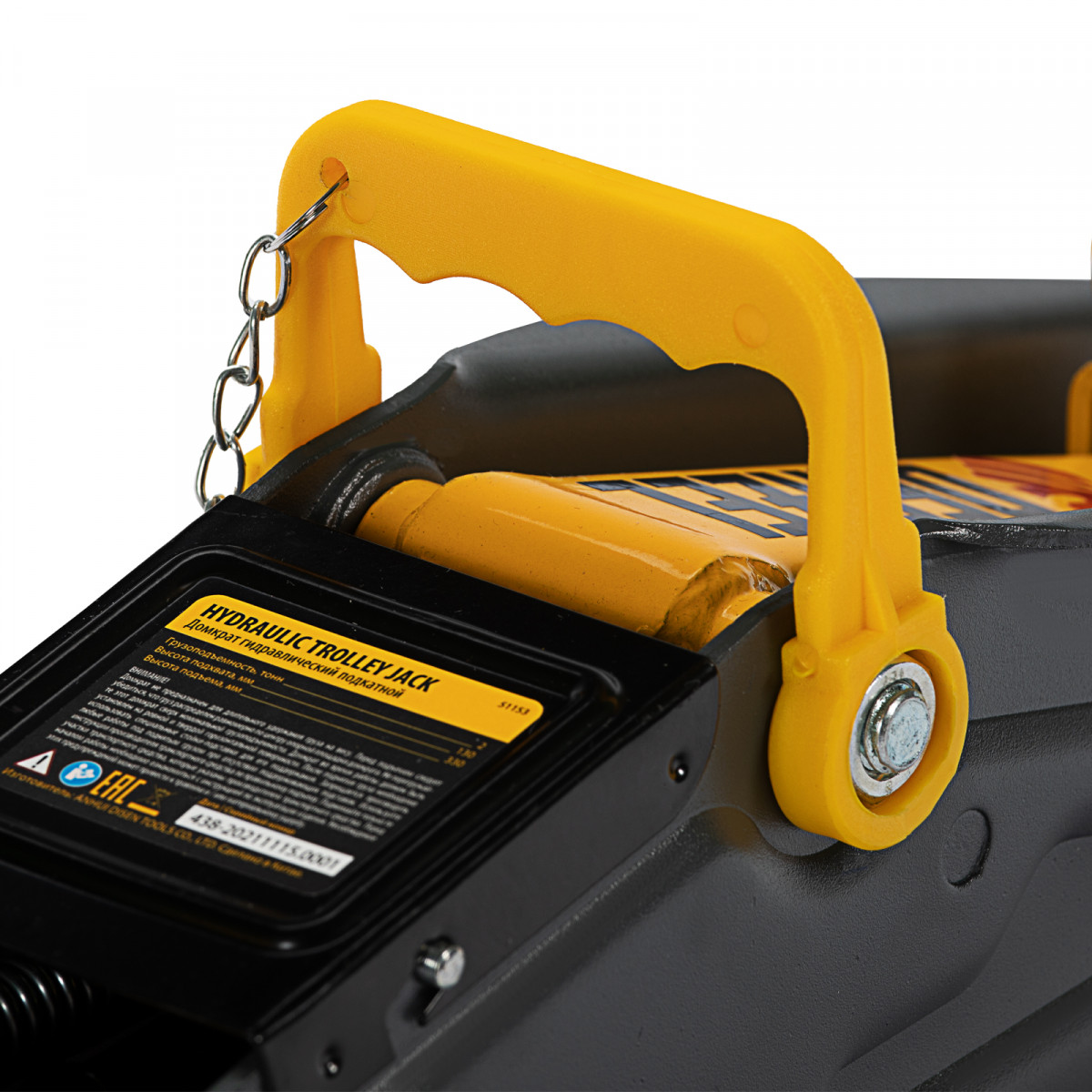 • Эргономичность — домкрат имеет переставную рукоятку для комфортного перемещения и извлечения из-под автомобиля.