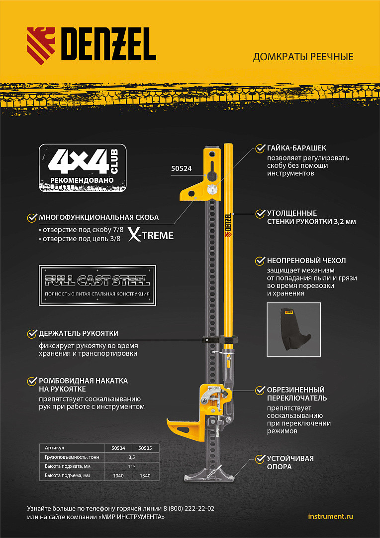 • Протестировано профессионалами — домкрат испытан в полевых условиях и рекомендован OFF-ROAD клубом 4Х4.