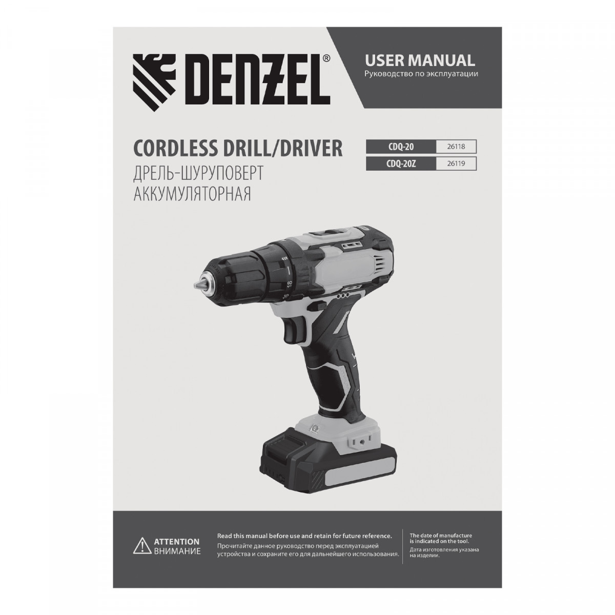 Дрель-шуруповерт аккумуляторная CDQ-20, Li-Ion, 20 В// Denzel