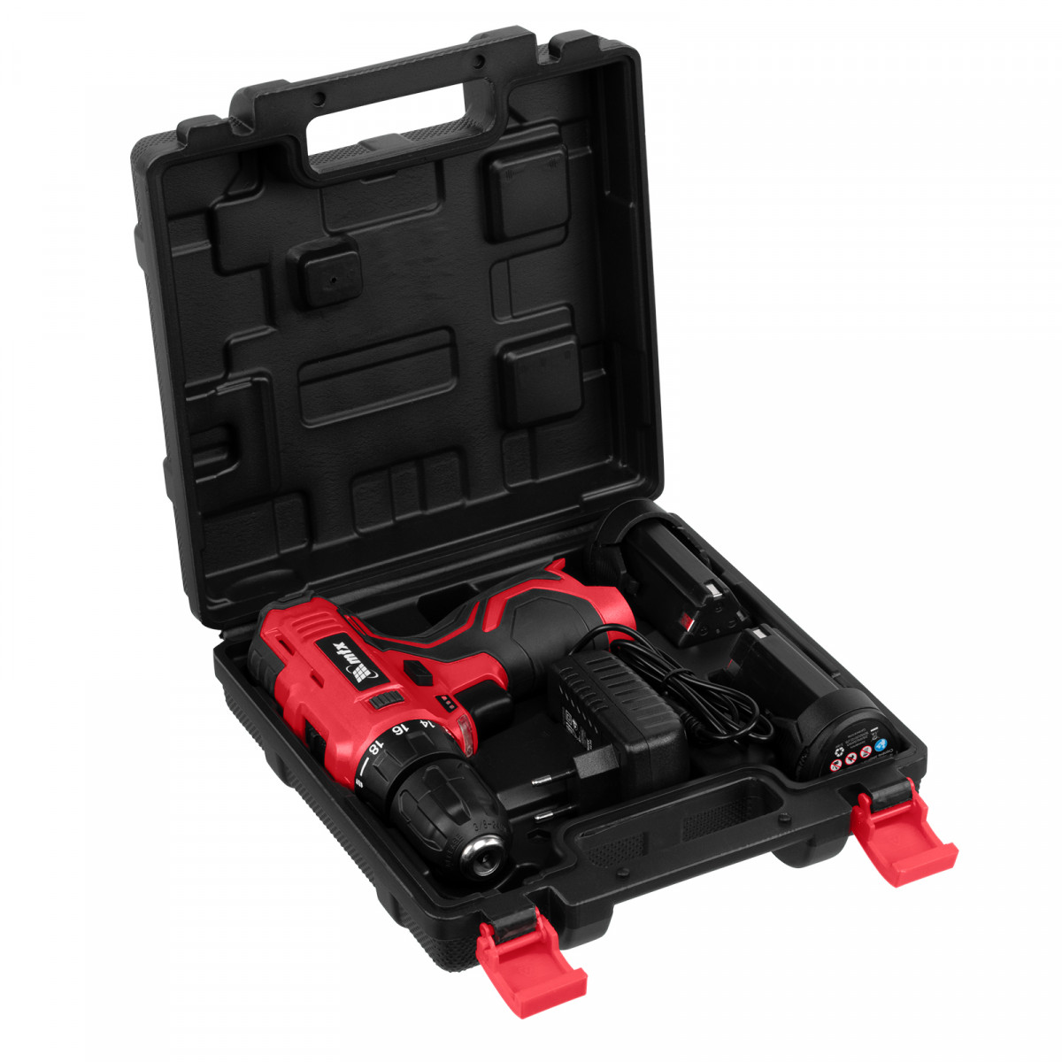 • Удобное хранение и транспортировка — дрель-шуруповерт поставляется в прочном кейсе.