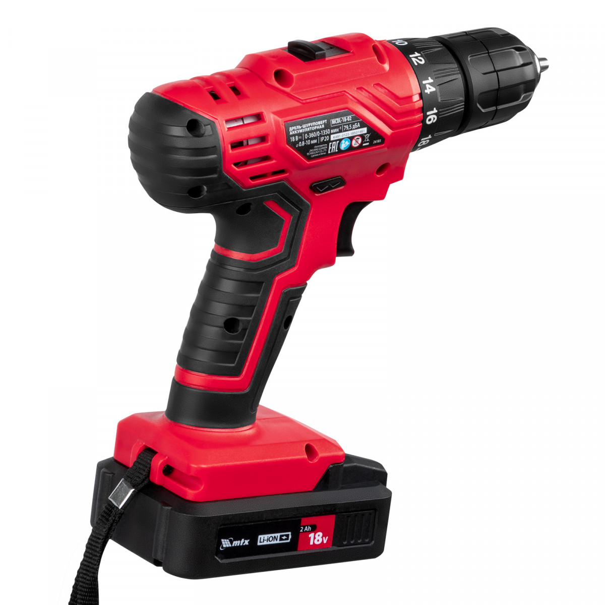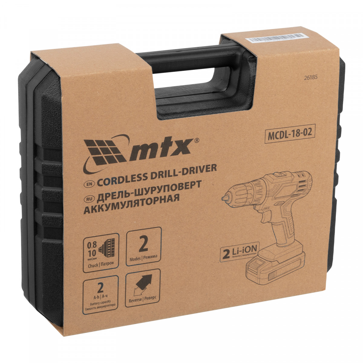 Дрель-шуруповерт аккумуляторная MCDL-18-02, Li-Ion, 18 В, 2 акк. MTX