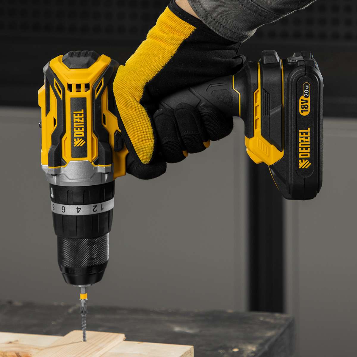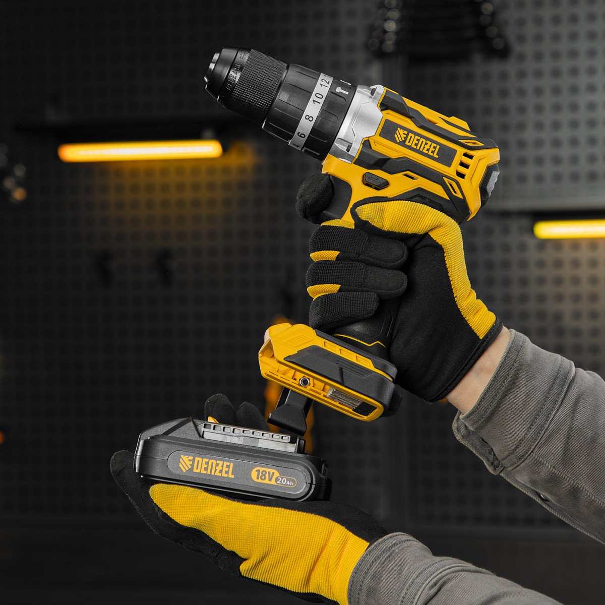 Дрель-шуруповерт аккумуляторная ударная бесщет CIDB-18-02, Li-Ion, 18 В Denzel