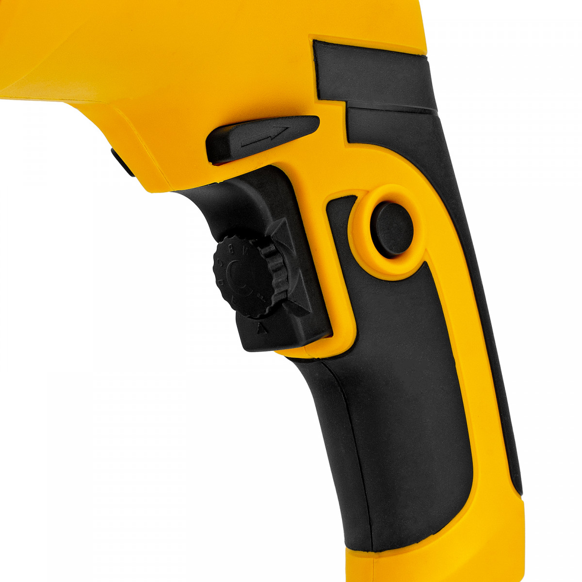 • Комфортная работа — основная и боковая рукоятки не выскальзывают из рук, дрель весит 1,95 кг, что позволяет долго работать без ощущения усталости.