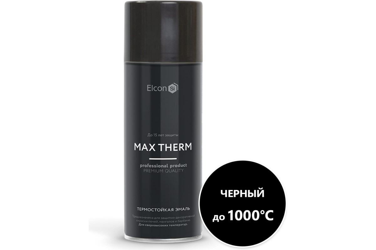 Термостойкая эмаль Elcon Max Therm черная, 1000 градусов, аэрозоль 520 мл 00-00002957 предназначена для защитно-декоративного окрашивания поверхностей и различного оборудования в помещениях с высоким перепадом температур.