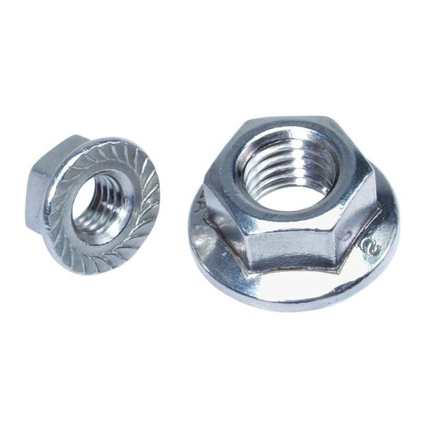 Гайка шестигранная с фланцем. Фланец гайки рельефный. Используется для монтажа, соединения, крепления элементов конструкций и оборудования совместно с болтами, шпильками с соответствующим размером метрической резьбы.