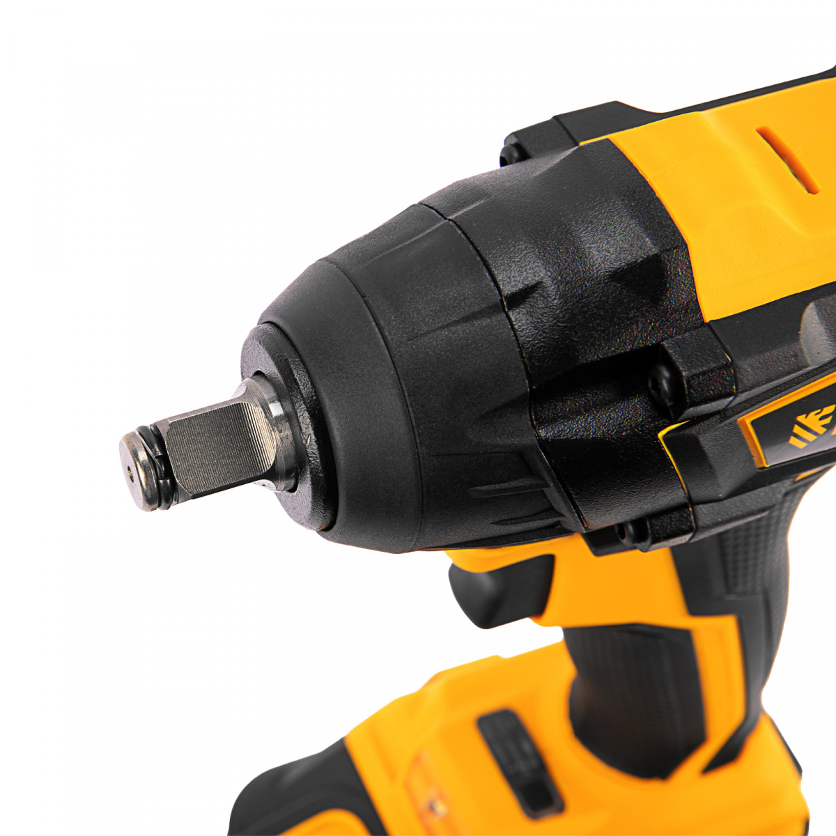 • Полная готовность к работе — в комплект входит зарядное устройство, аккумулятор, адаптер HEX 1/4 дюйма и 4 ударные торцевые головки размером 17, 19, 21 и 22 мм.
