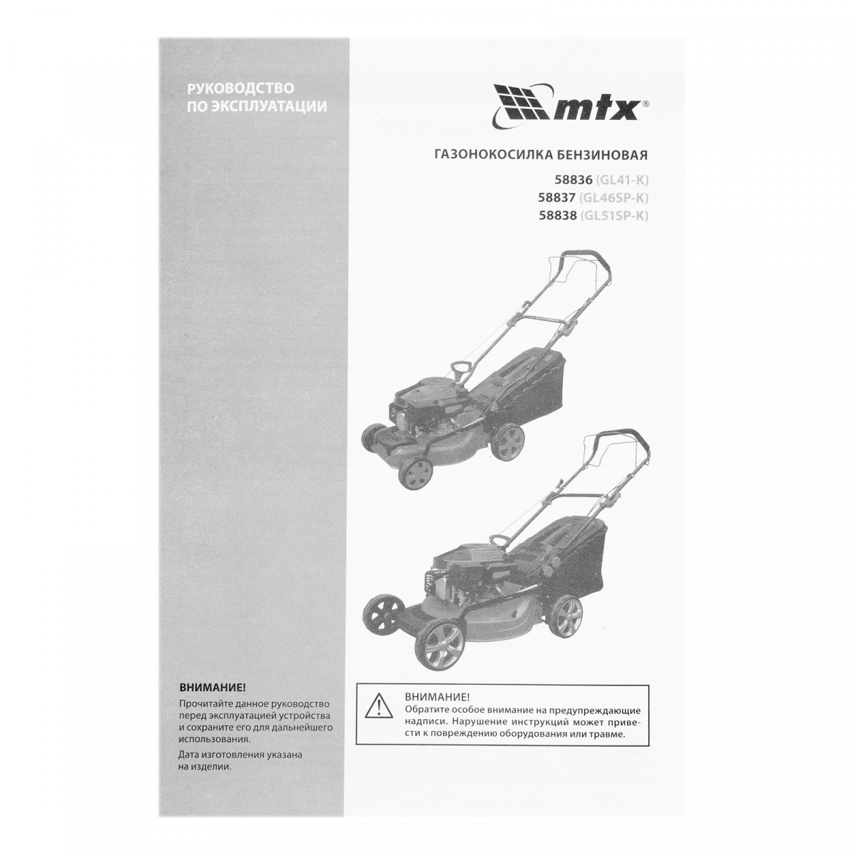 Газонокосилка бензиновая GL46SP-K, 145 см3, 46 см, привод, 50 л MTX