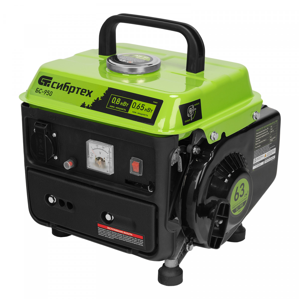 Генератор бензиновый БС-950, 0.8 кВт, 230 В, 2-х тактный, 4 л, ручной стартер Сибртех