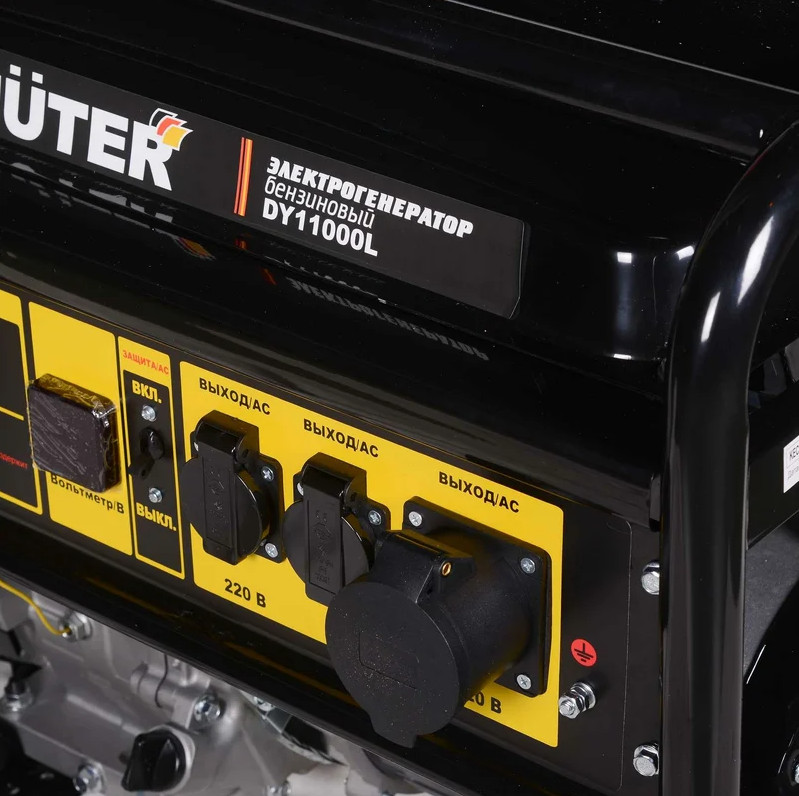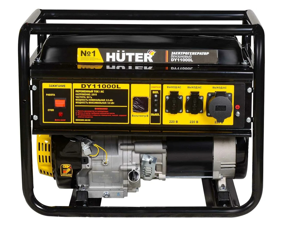 Бензогенератор HUTER DY11000L имеет защитные системы от перегрузок и коротких замыканий. В нем также реализована функция защиты от низкого уровня масла, которая заключается в том, что его попросту невозможно запустить, если уровень будет ниже допустимого. Генератор надежный, экономичный и простой в эксплуатации. Его силовой агрегат относится к категории двигателей с повышенным рабочим ресурсом, есть многофункциональный дисплей. В устройстве имеется регулировка оборотов двигателя, которая способствует экономии топлива. Возможна комплектация колесами и ручками – опционально.