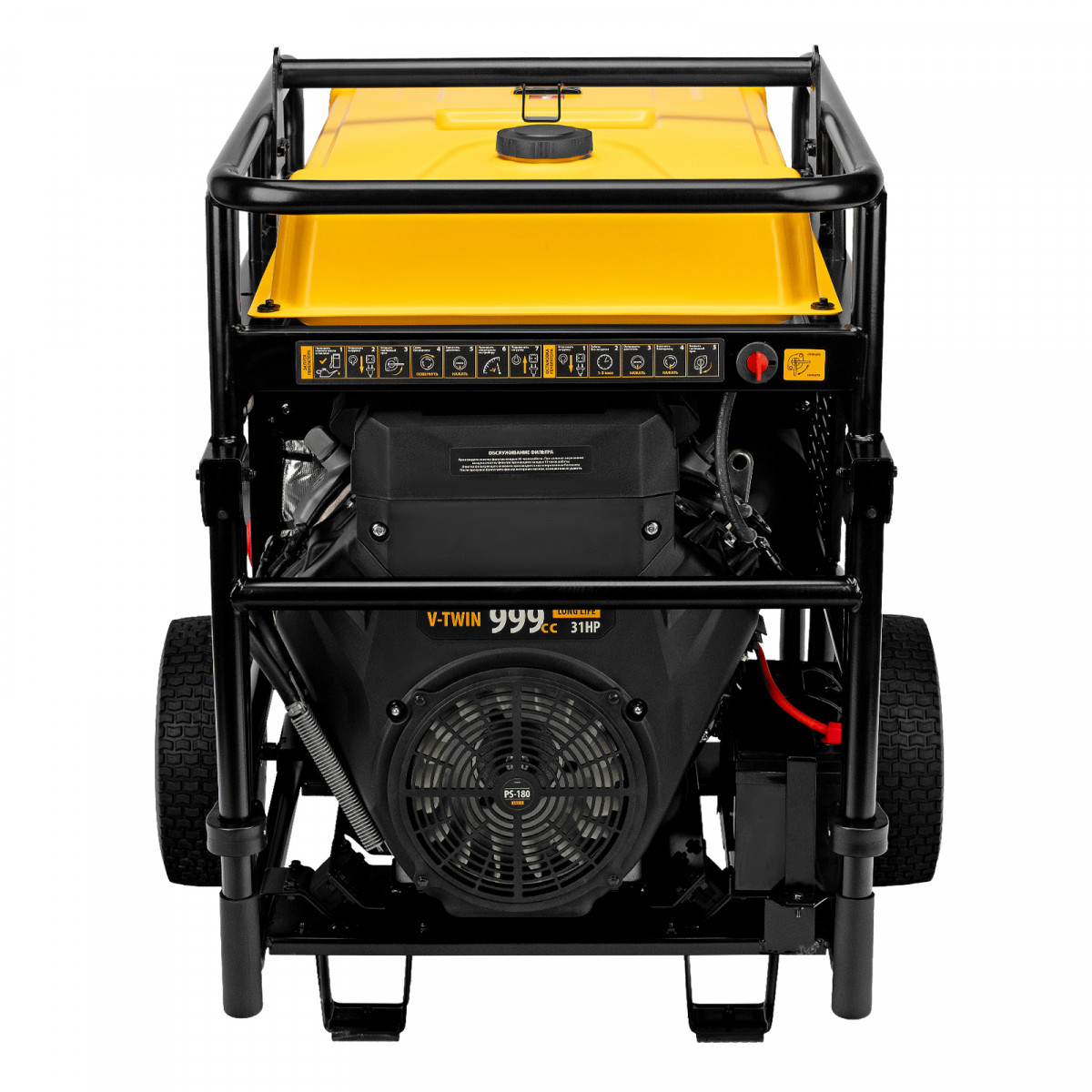 • Мобильность — колеса и ручки упрощают перемещение генератора по рабочей площадке.