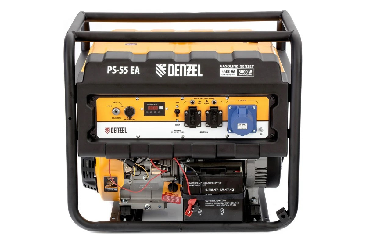 Генератор бензиновый PS-55EA 5,5 кВт 230В 25л коннектор автоматики, электростартер Denzel