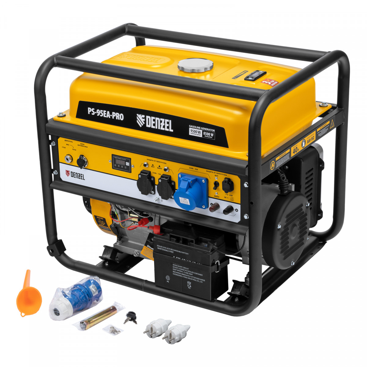 Генератор бензиновый PS-95EA-PRO, 9,5 кВт, 230 В, 40 л, разъём ATS, эл.старт Denzel