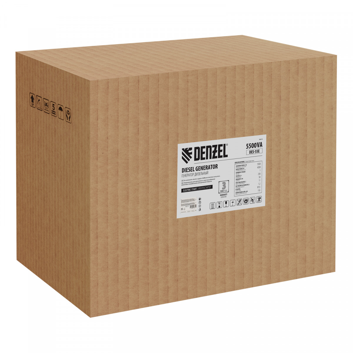Генератор дизельный DES-55E, 5,5 кВт, 230 В, 11 л, электростартер Denzel