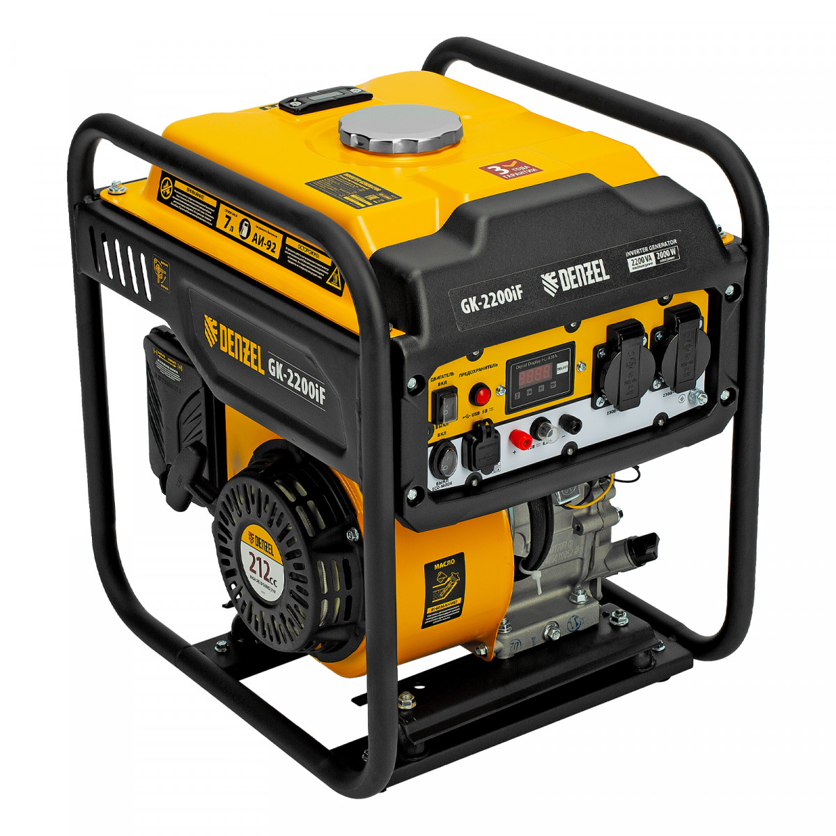 Генератор инверторный GK-2200iF, 2,2 кВт, 230 В, ручной старт DENZEL