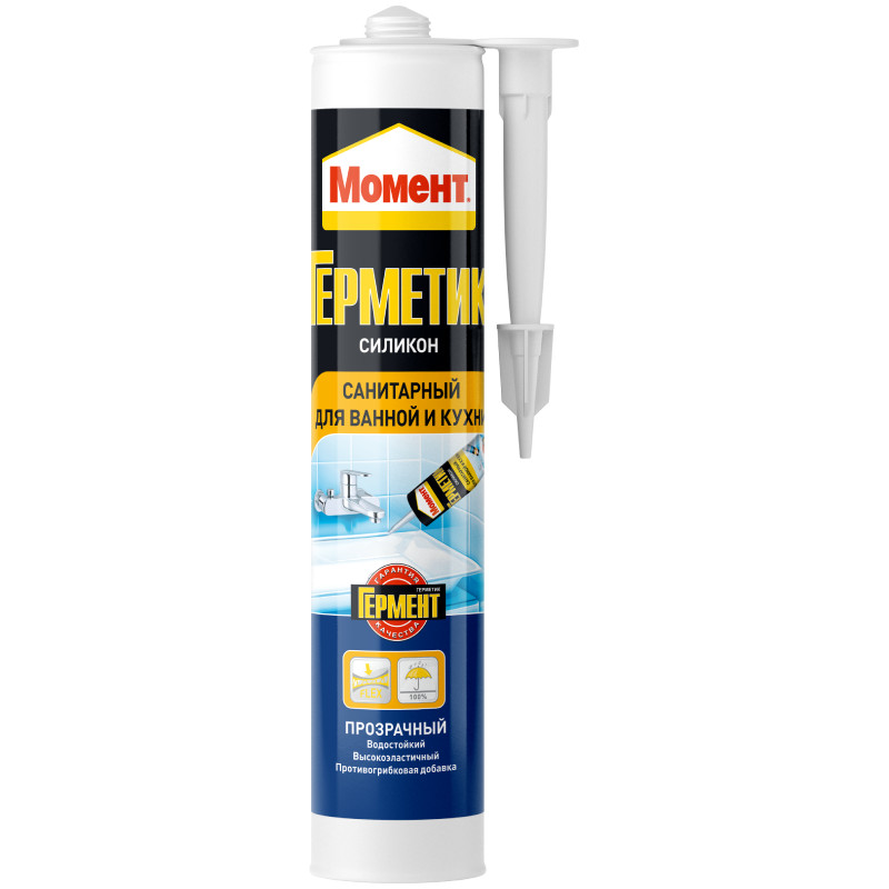 Герметик санитарный силиконовый для ванной и кухни МОМЕНТ 280мл прозрачный