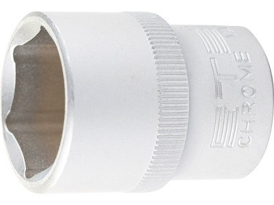 Сменная торцевая головка повышенной износостойкости из хромованадиевой стали. Твердость материала рабочей части головки – 42 HRс, что соответствует требованиям ГОСТа. Матовое хромоникелевое покрытие. Торцевая головка имеет динамический 6-гранный профиль с увеличенной площадью контакта с деталью, что снижает деформацию граней крепежа при высоких нагрузках. Головка имеет посадочное место для присоединительного квадрата 1/2. Предназначена для эффективного монтажа болтовых соединений.