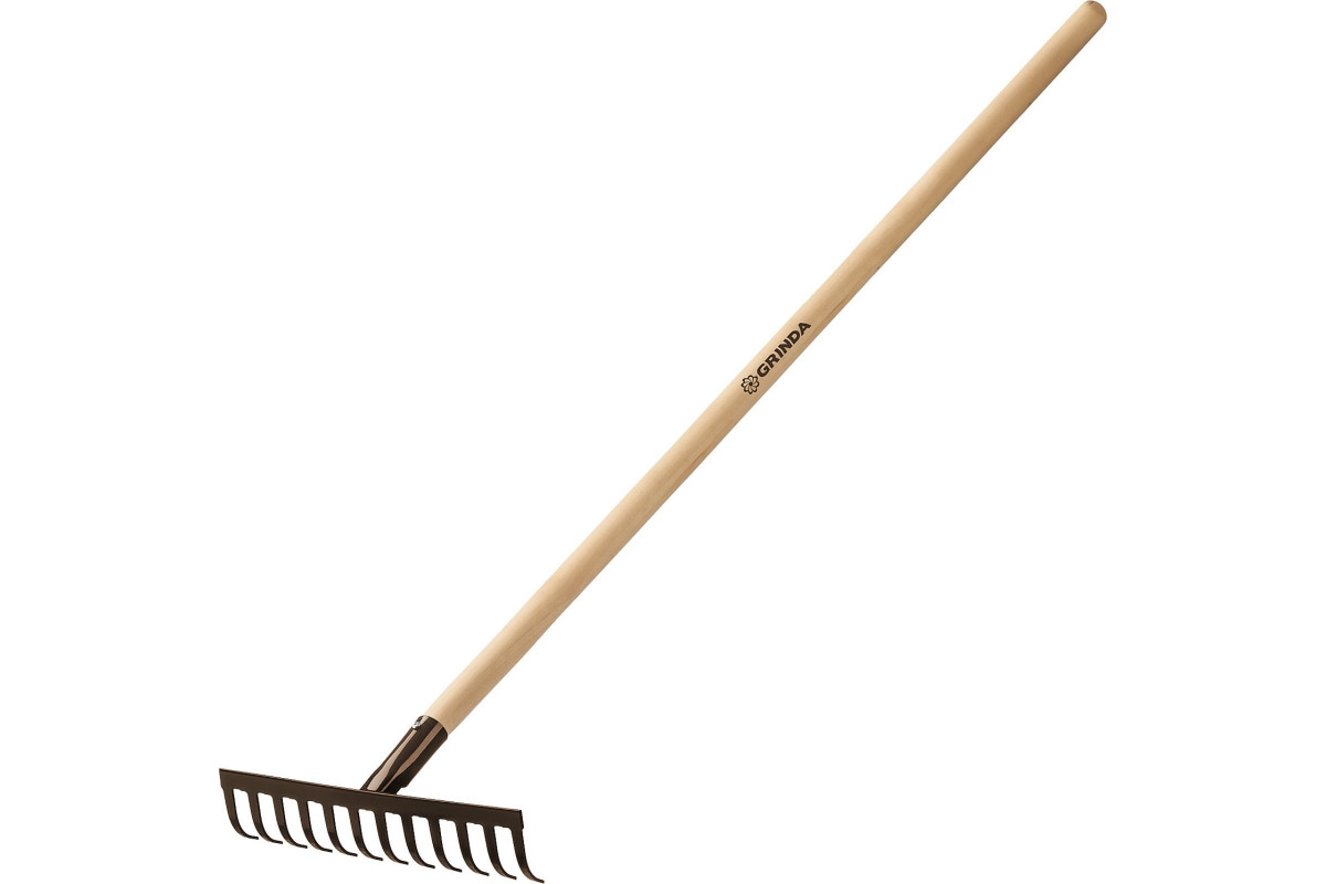 Грабли садовые с деревянным черенком 12 прямых зубьев 310х80х1300 мм GRINDA