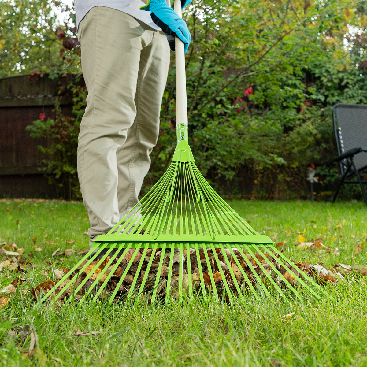 - Прочность и долговечность — грабли изготовлены из среднеуглеродистой стали и покрыты порошковой эмалью для защиты от коррозии.