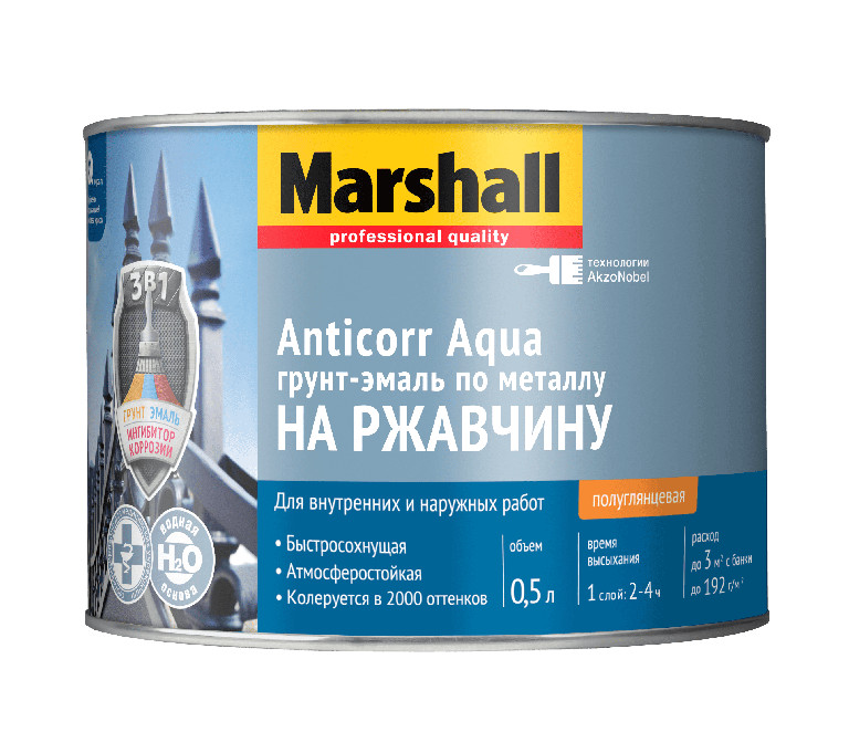 Грунт-эмаль Marshall ANTICORR AQUA BC 0,5л