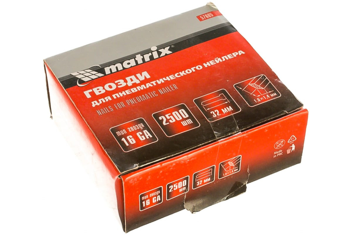 Гвозди 16GA для пневм нейлера сечение 1,6х1,4 длина 32 мм 2500 шт Matrix