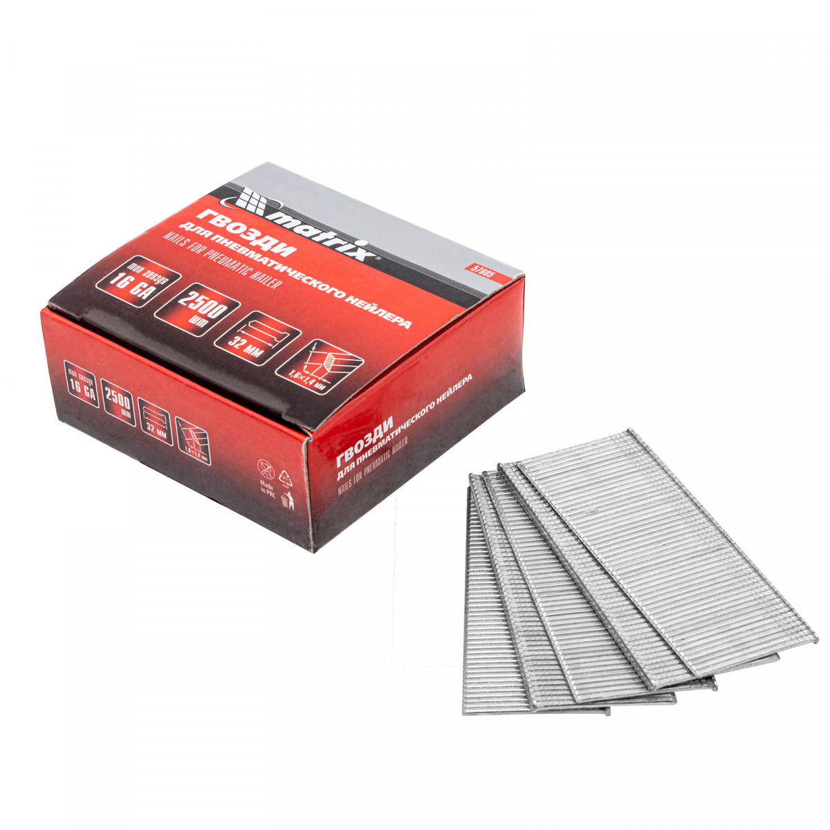 Гвозди для пневматического нейлера 16GA, сечение 1.6 х 1.4, длина 32 мм, 2500 шт Matrix
