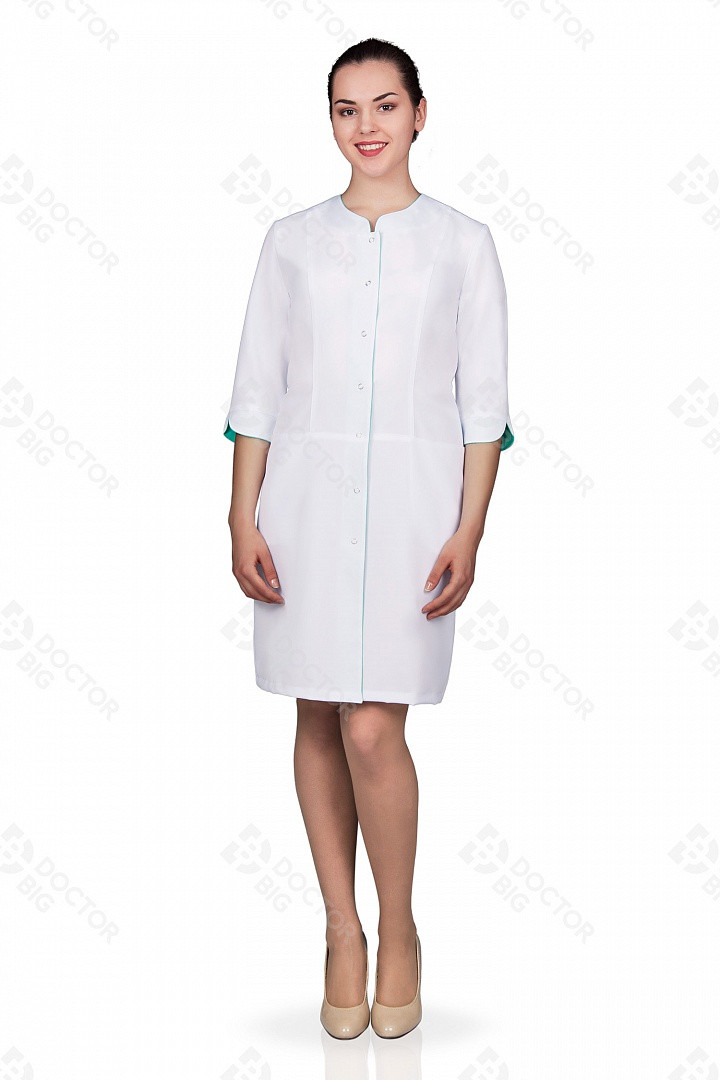 Халат медицинский №214 (тк.тиси) DOCTORBIG, белый/голубой