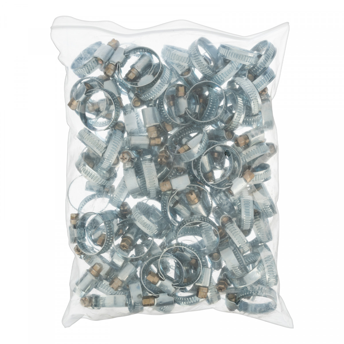 Металлические хомуты Сибртех 47558 со стандартным болтовым креплением, диаметром охвата 16-27 мм и шириной 9 мм, 100 шт. в упаковке, — крепежные элементы для соединения труб и шлангов. Обеспечивают плавную регулировку диаметра обжима, подходят для многократного использования. Строительные стяжки применяют для монтажа водопроводных, отопительных, вентиляционных систем.
