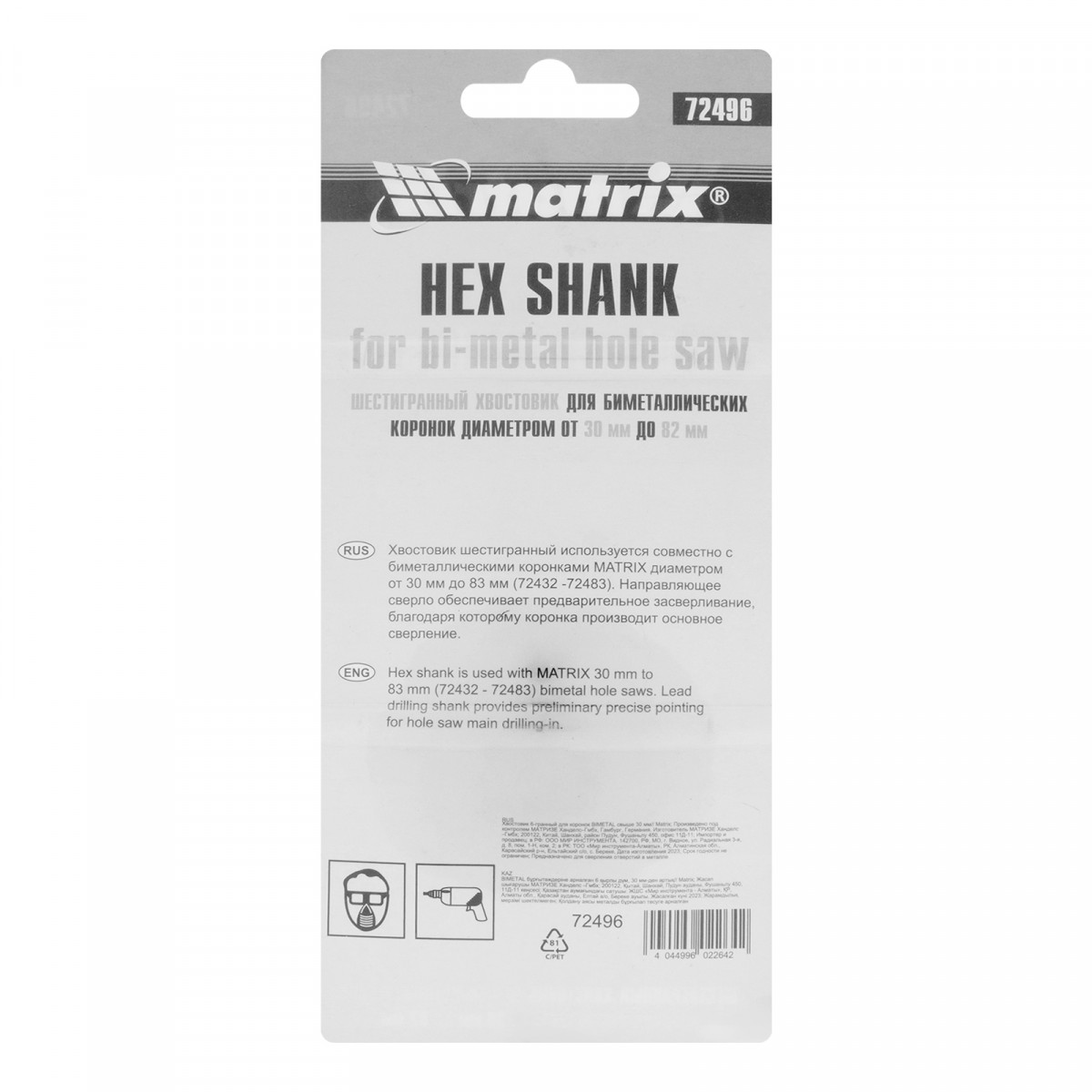 Хвостовик шестигранный для коронок Bimetal свыше 30 мм Matrix