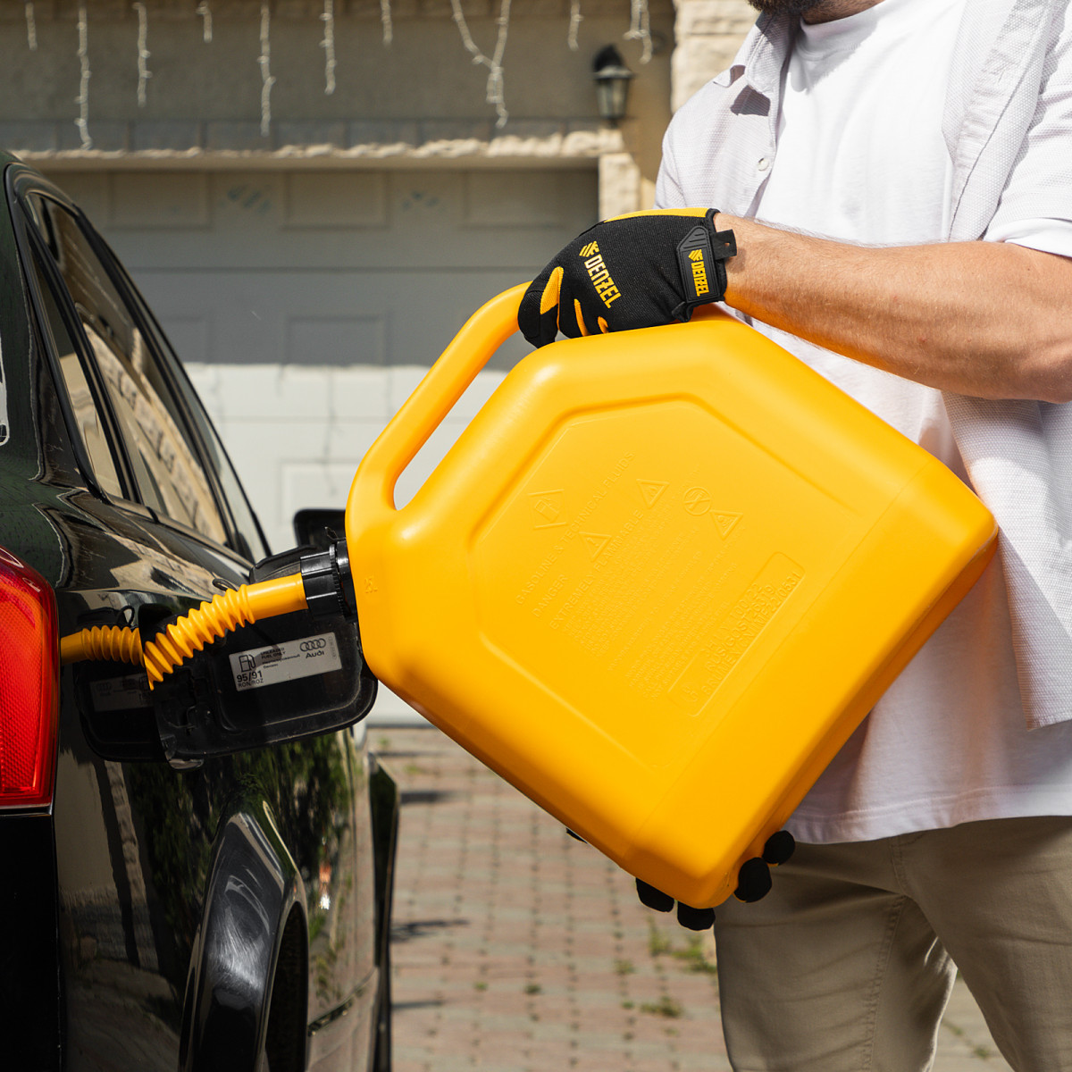 • Полупрозрачный корпус — можно отслеживать уровень заполнения канистры.