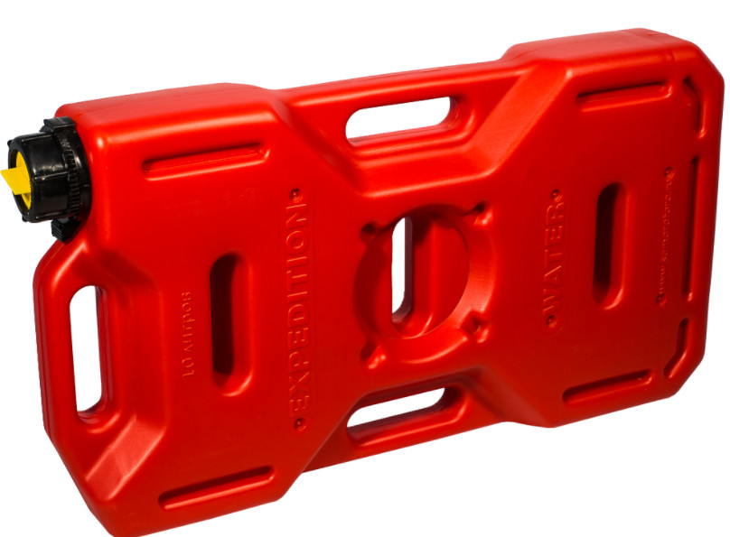 Многие утверждают, что данная тара имеет самую удобную форму на сегодняшний день. Экспедиционную канистру можно закрепить где удобно, в ней присутствует множество ручек и отверстий для крепления в разных местах. Пусть это будет багажник, квадроцикл, мотоцикл, катер,  джип, прицеп и т.д.