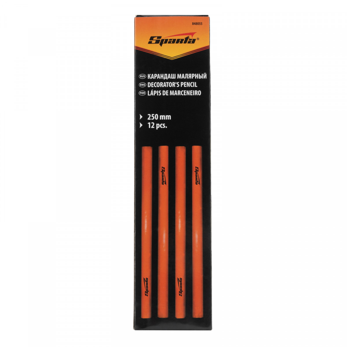 Малярный карандаш Sparta 848055 длиной 250 мм, 12 шт. в упаковке, предназначен для нанесения разметки при выполнении отделочных, строительных и плотницких работ. Мягкий грифель не царапает поверхность, оставляет четкий, но не контрастный след, который не просвечивается после окрашивания. Инструмент будет полезен как частному мастеру, так и профессионалу.