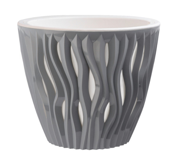 Стильные кашпо серии «Вдохновение» с объёмной волнообразной текстурой станут украшением любого интерьера - от сдержанного офисного до уютного домашнего. Конструкция предусматривает удобные технологичные ручки, которые упрощают уход за растением, а дренажная вставка обеспечивает отвод воды от грунта и позволяет дышать корневой системе.