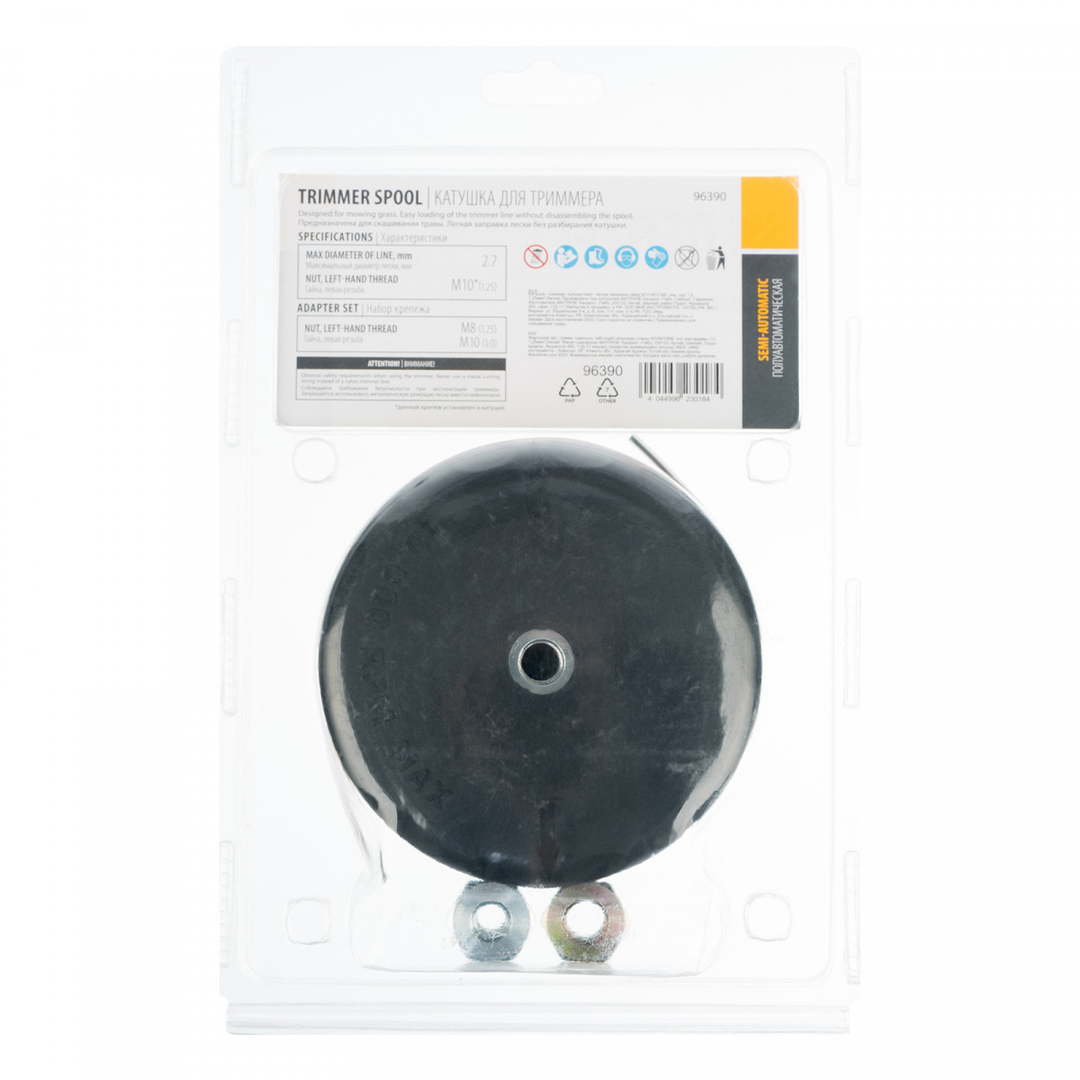 • Универсальность — в комплект поставки входят гайки разных типоразмеров для установки катушки на триммеры с различными типами крепления.