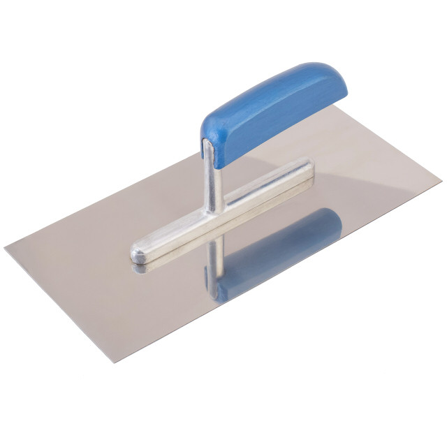 Кельма из нержавеющей стали с лакированной деревянной ручкой.