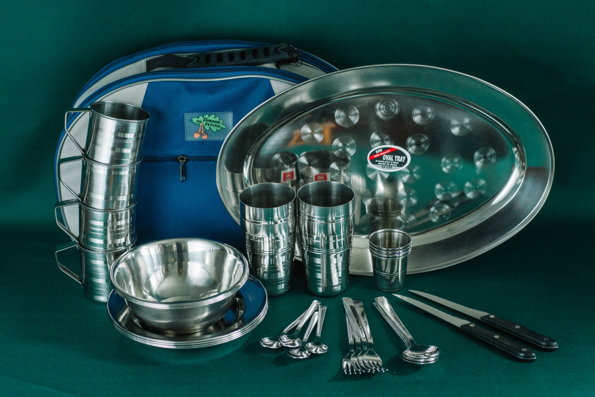 Кейс содержит всю необходимую посуду для приема пищи на природе в компании 4 человек. Поднос поможет буквально где угодно быстро организовать и сервировать «стол» в полевых условиях, притом не только рядовой походный завтрак, обед или ужин, но и небольшое пиршество. В комплекте есть стаканы и стопки, удобные для употребления прохладительных и алкогольных напитков. Все предметы в посудном наборе выглядят достаточно презентабельно для того, чтобы преподнести их в подарок или использовать для праздничного пикника.