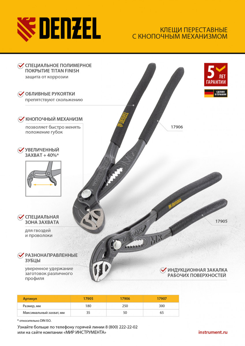 - Удобная упаковка — клещи поставляются с подвесной картой для размещения на стенде.