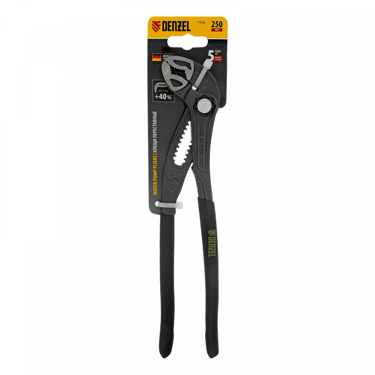 Клещи переставные, кнопочный механизм, обливные рукоятки, 250 мм Denzel