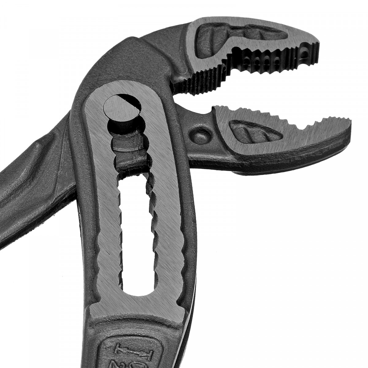 - Универсальность — разнонаправленные зубцы позволяют удерживать детали как с круглым, так и с квадратным профилем.
