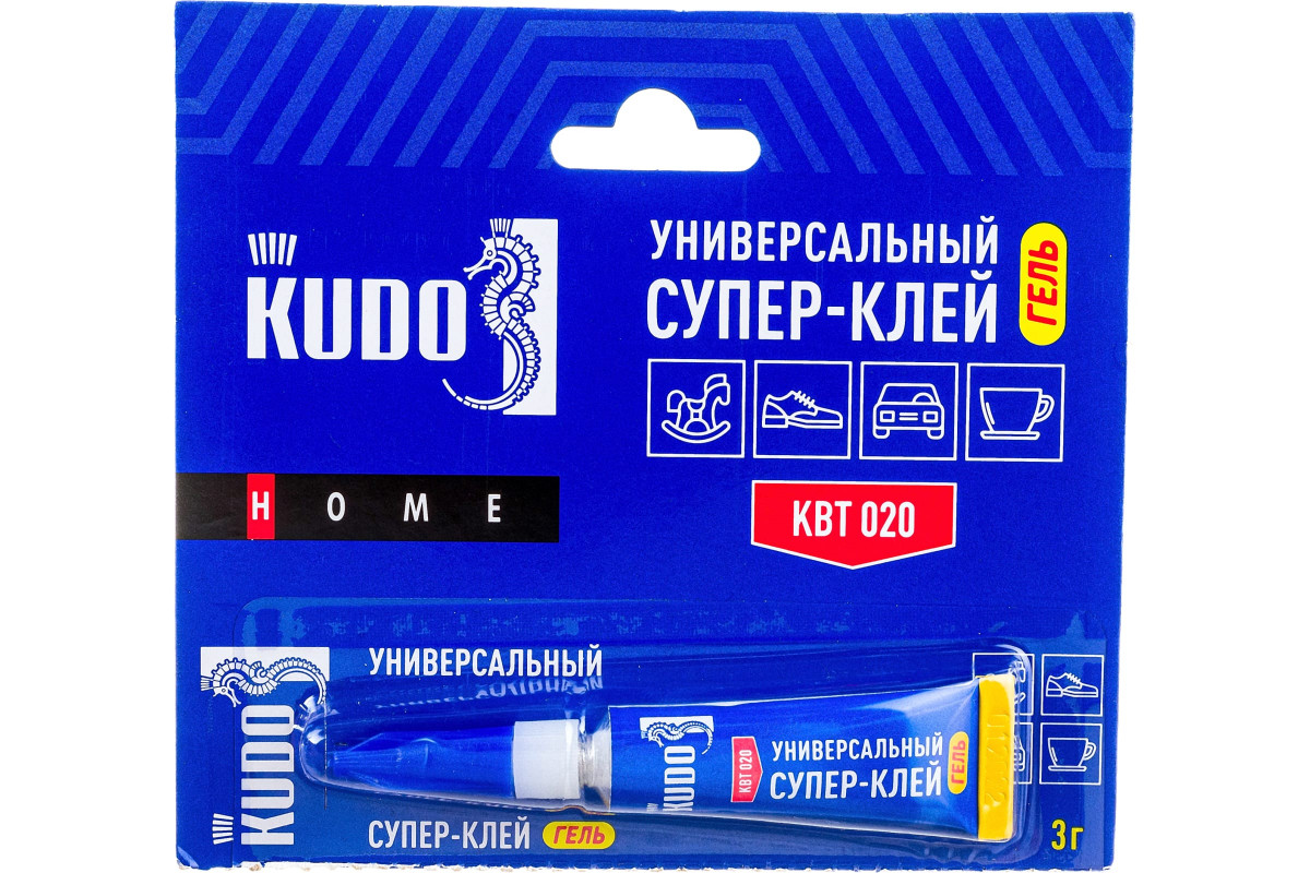 Универсальный цианоакрилатный клей KUDO супер-клей, гель, 3 г КВТ-020 низковязкий, однокомпонентный, предназначен для быстрого и прочного склеивания изделий из различных материалов, таких как пластик, керамика, резина, металл, кожа, дерево.