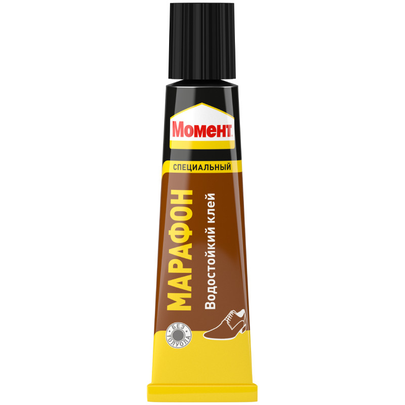 Высокая водостойкость клея МОМЕНТ Марафон обеспечивает надежное склеивание поверхностей из резины, кожи и ткани.