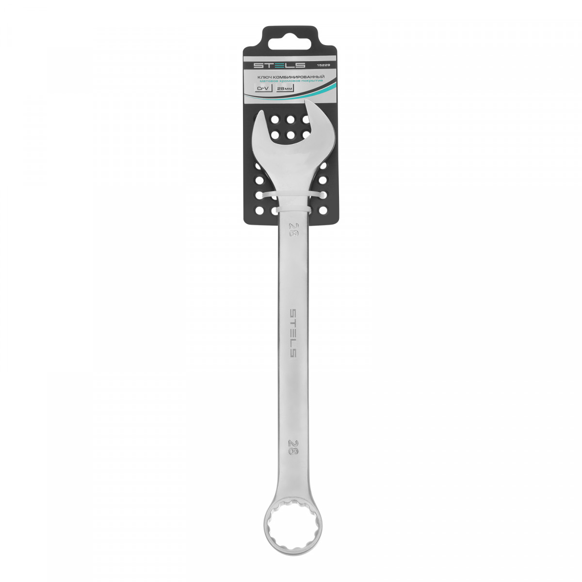 Ключ комбинированный, 28 мм, CrV, матовый хром Stels