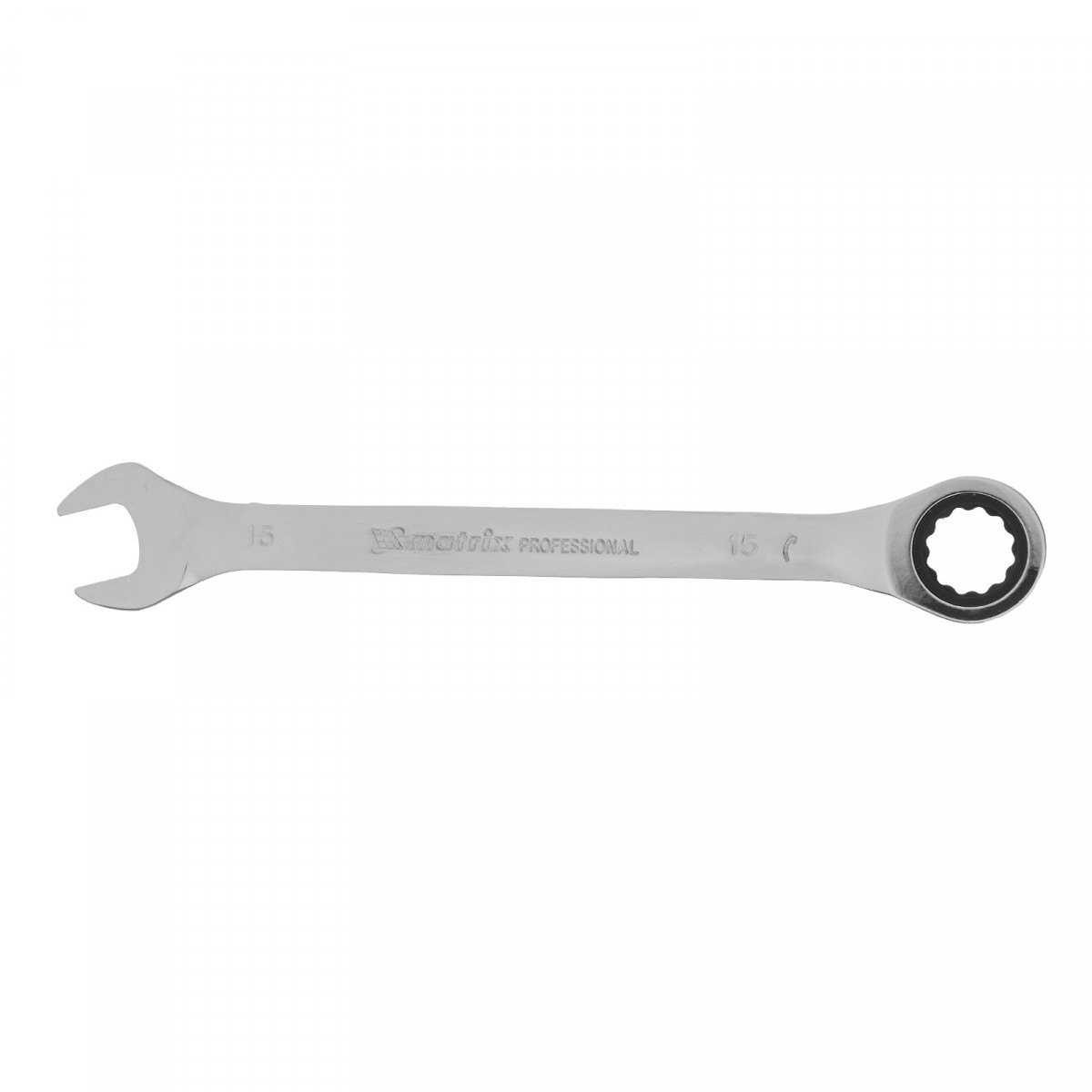Ключ комбинированный трещоточный, 15 мм, CrV, зеркальный хром Matrix Professional