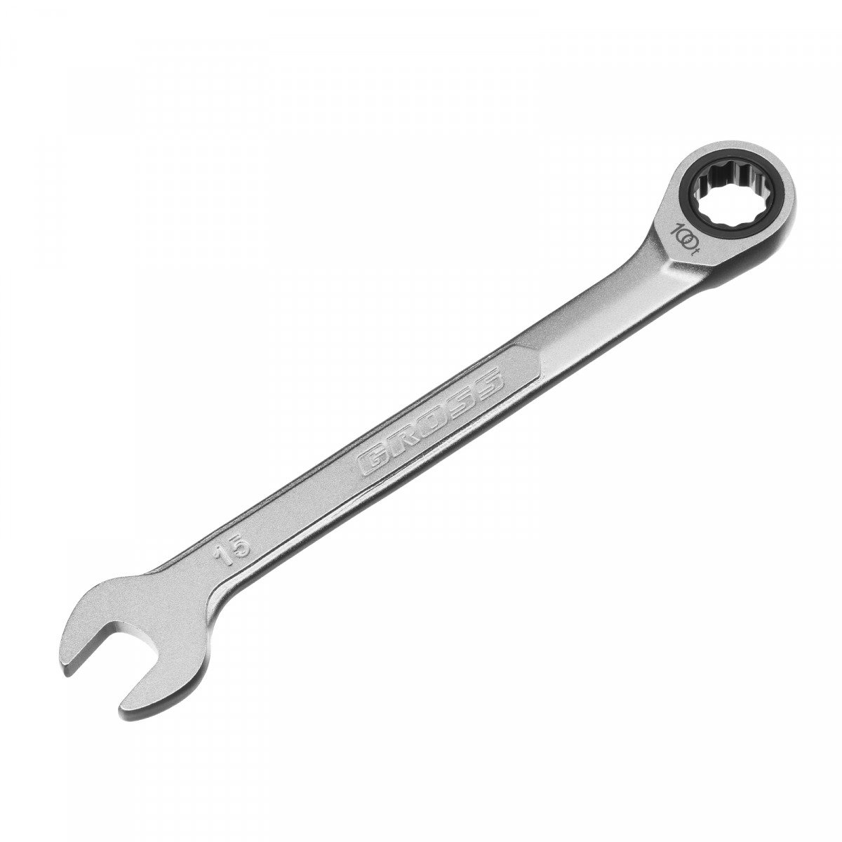 Ключ комбинированный трещоточный, 15 мм, количество зубьев 100 Gross