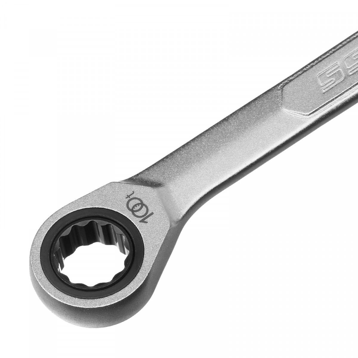 • Храповый механизм оснащен 100 зубцами, что обеспечивает плавность хода инструмента (шаг трещотки всего 3,6 градусов) и делает его удобным для работы в ограниченном пространстве.