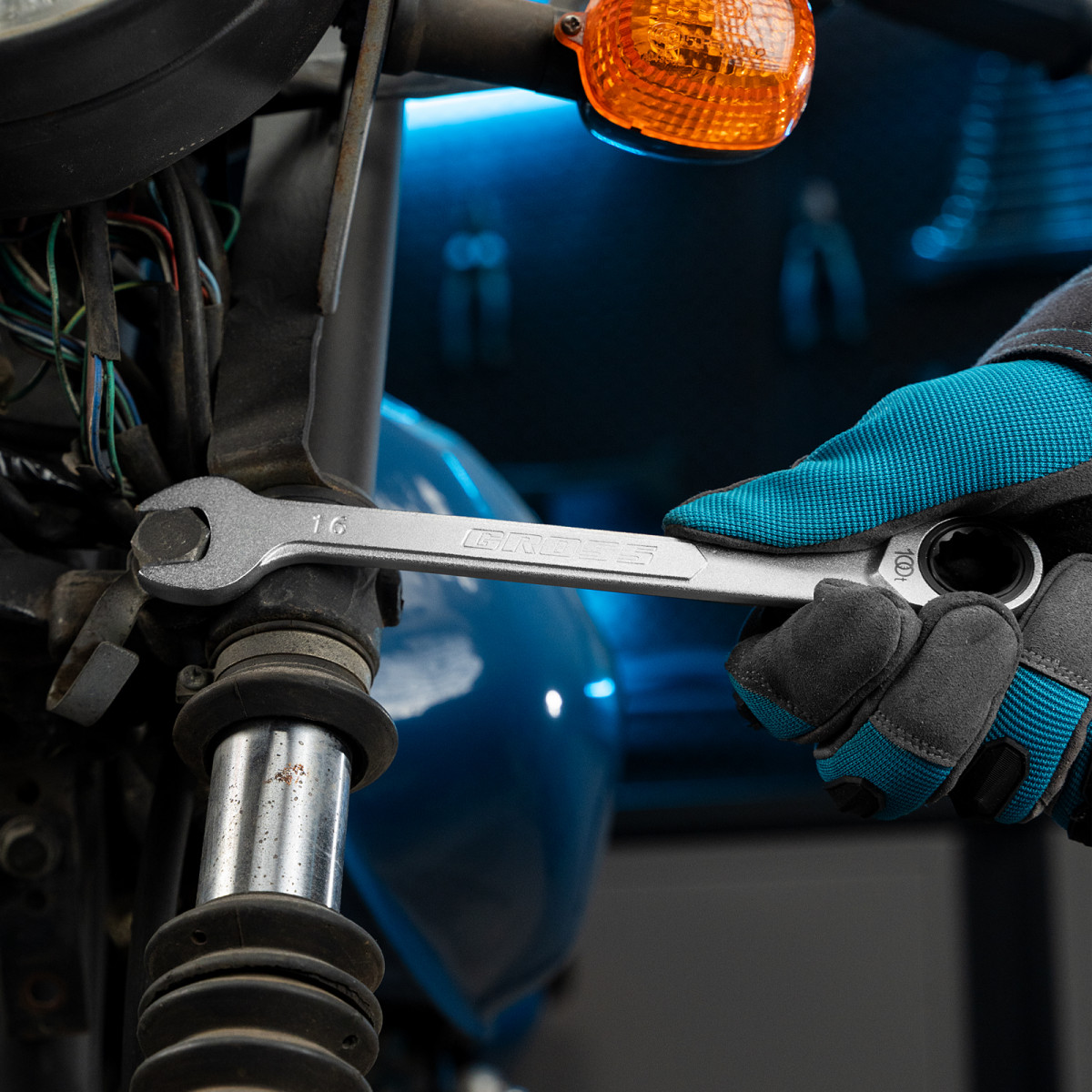 - Благодаря матовому покрытию ключ не выскальзывает из рук, даже если они в масле.