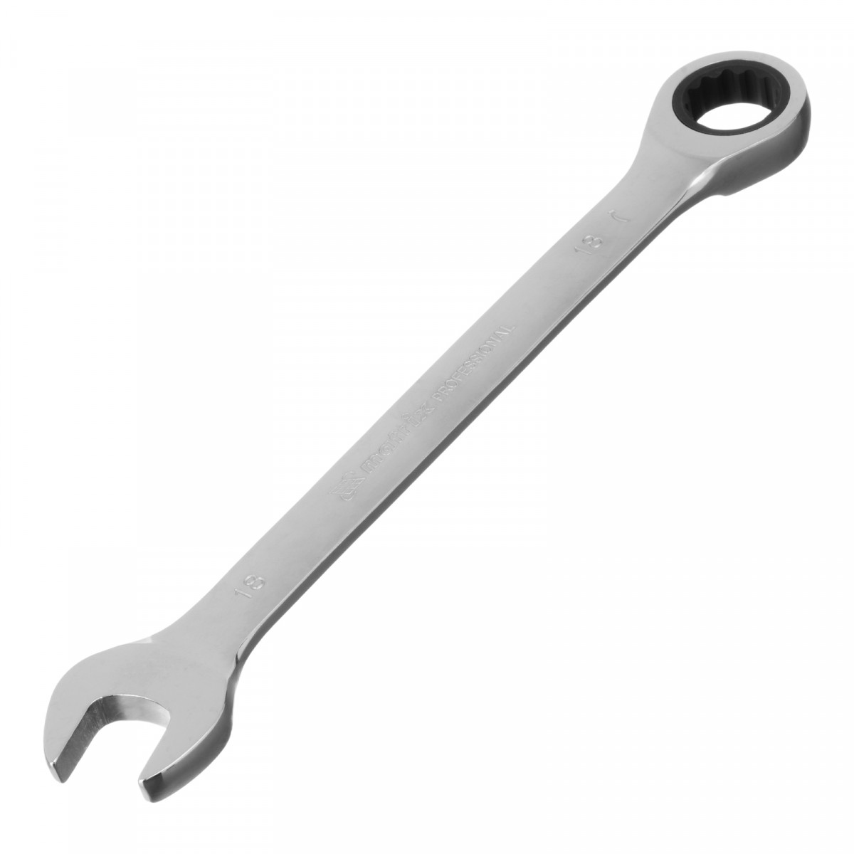 Ключ комбинированный трещоточный, 18 мм, CrV, зеркальный хром Matrix Professional