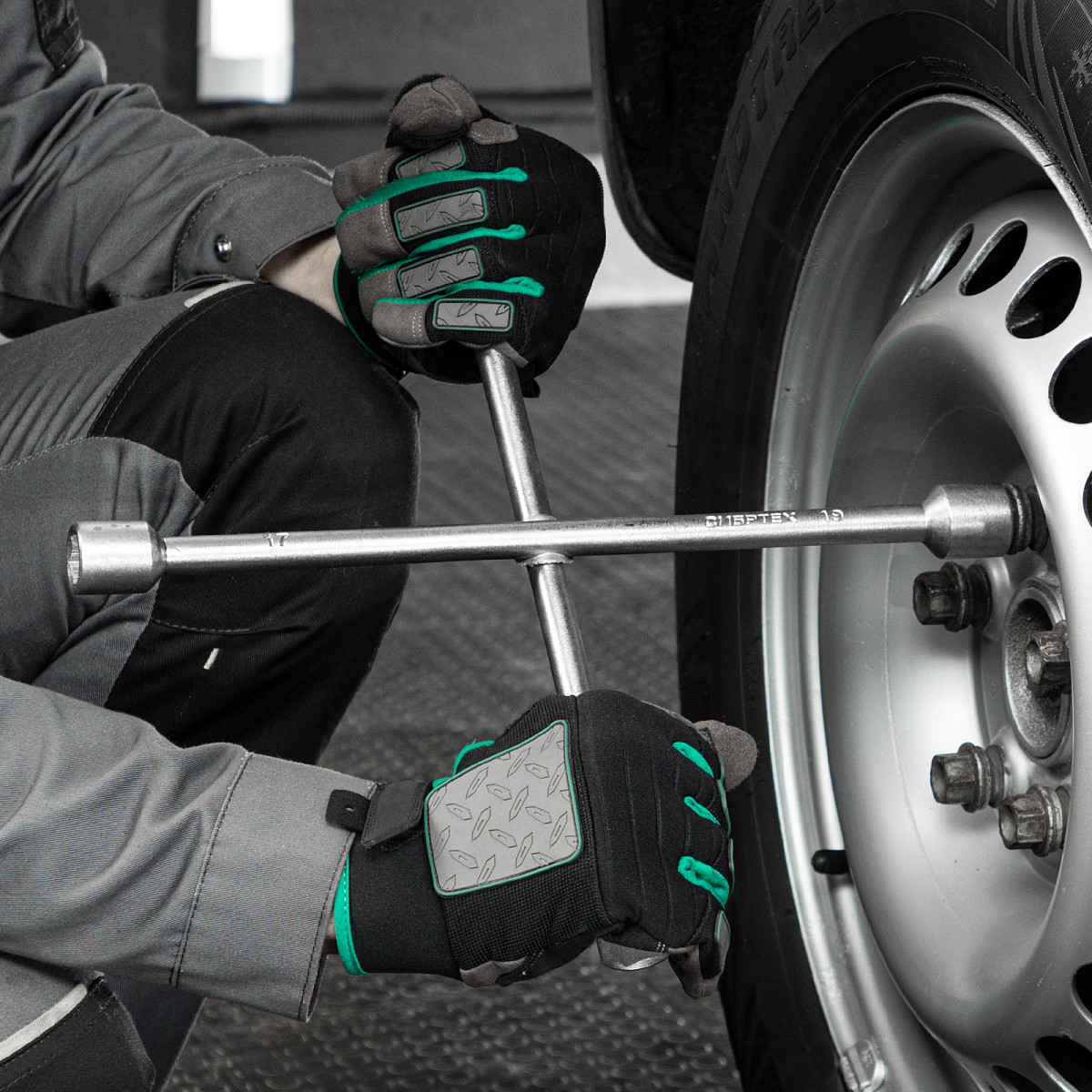 Баллонный ключ-крест Сибртех 14257 с толщиной прутьев 14 мм и размерами головок 17, 19, 21 и 22 мм используется для снятия и монтажа автомобильных колес. 4 несъемные шестигранные торцевые головки подходят для колесных гаек и болтов наиболее распространенных размеров. Инструмент будет полезен работникам станций шиномонтажа и автосервисов, а также пригодится автовладельцам.